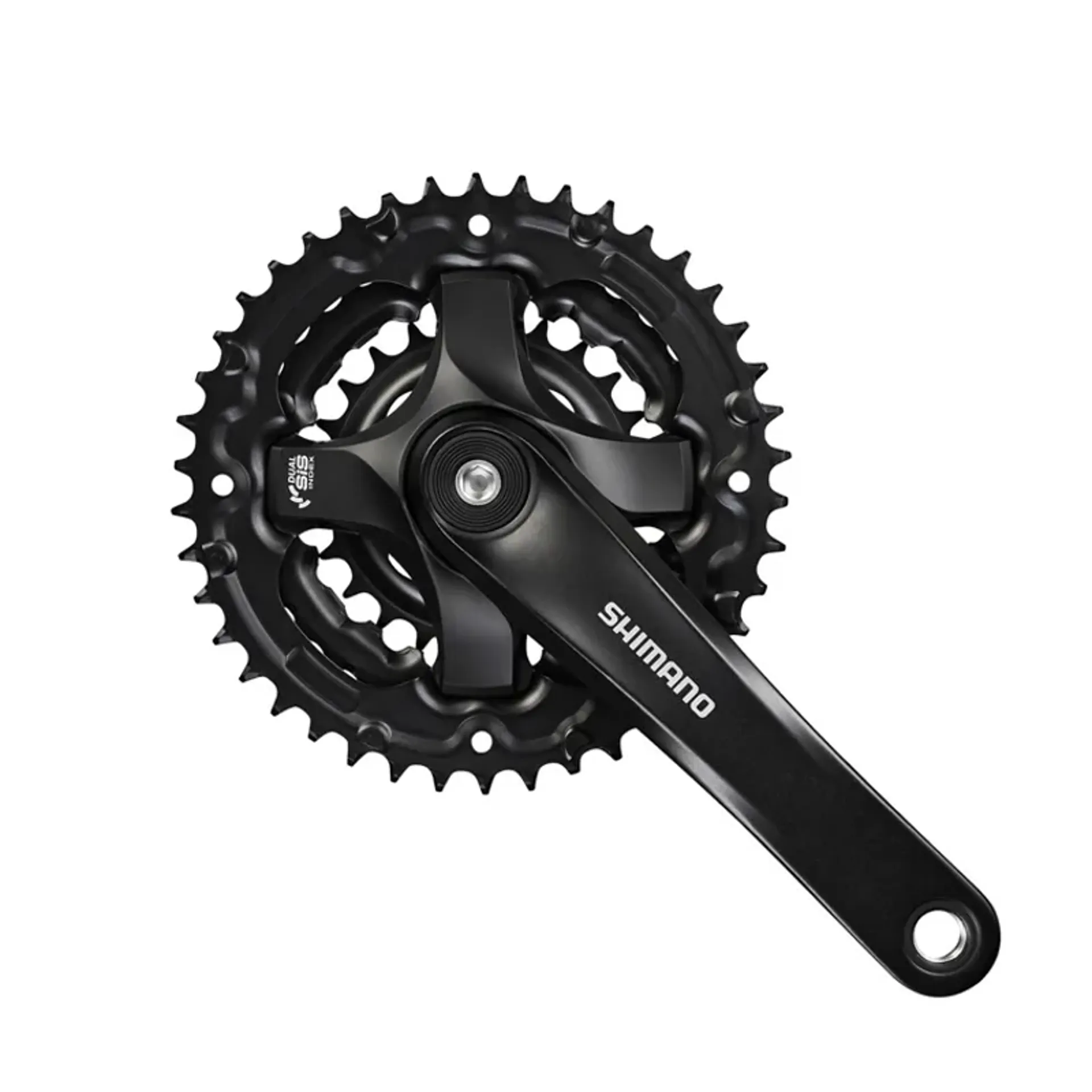 The SHIMANO TOURNEY TY crank delivers reliable, precise DUAL SIS shifting.